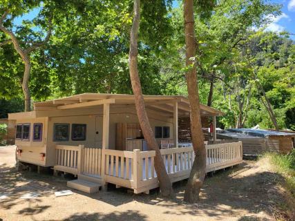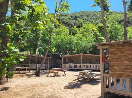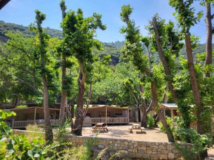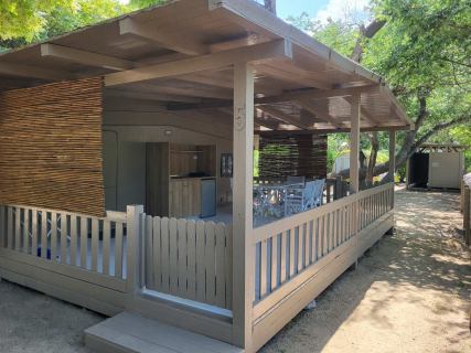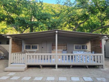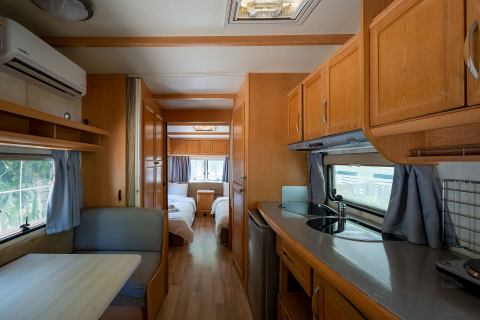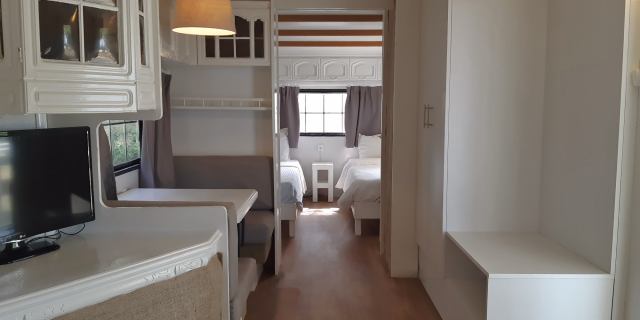 Σε ένα ιδιαίτερα διαμορφωμένο περιβάλλοντα χώρο με κήπους και δρομάκια με πέτρα και με το λευκό χρώμα να δεσπόζει παντού, τα ενοικιαζόμενα τροχόσπιτα υπόσχονται μια αξέχαστη διαμονή.